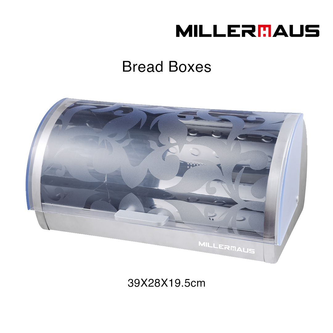 The Millerhaus Bread Box is a sleek and durable kitchen essential, crafted from high-quality stainless steel with a compact 19.5 cm size. It features a convenient roll-up top lid, allowing for easy access to your bread and keeping it fresh while stored on the kitchen countertop. In addition to its primary function as a bread box, this versatile piece can also be used as a safe cooking pot, thanks to its tri-ply stainless steel construction that ensures even heat distribution. Its modern design makes it both a functional and stylish addition to any kitchen.