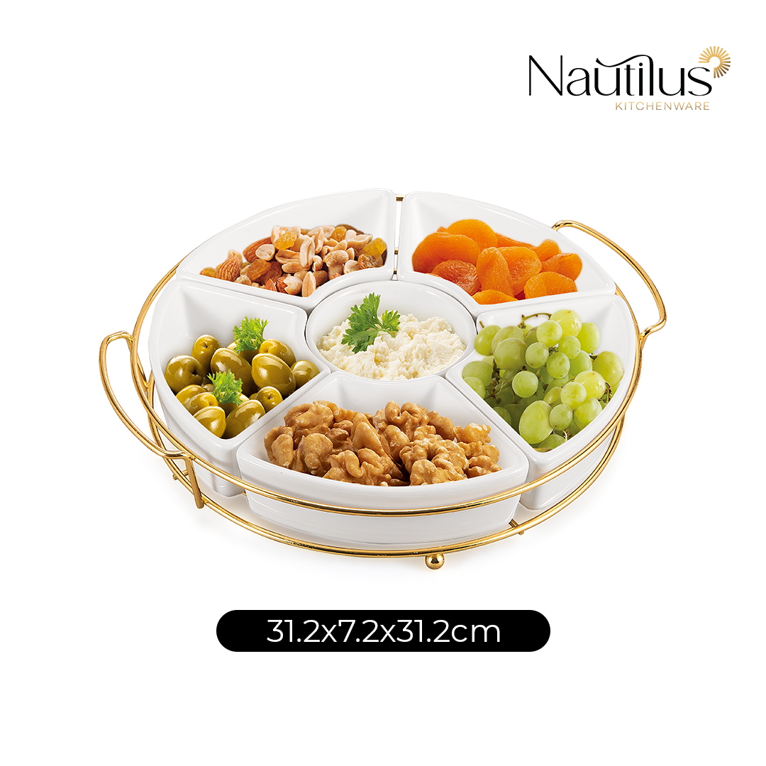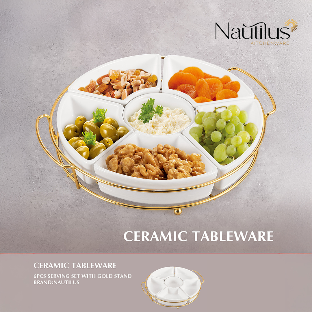 NAUTILUS CERAMIC TABLEWARE-6PCS SERVING SET WITH GOLD STAND