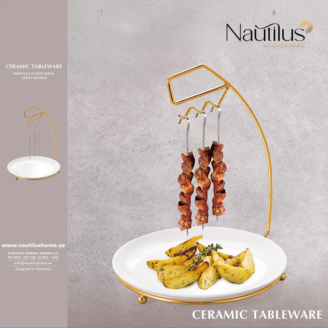NAUTILUS CERAMIC TABLEWARE-ESPEDETA STAND WITH GOLD SKEWER