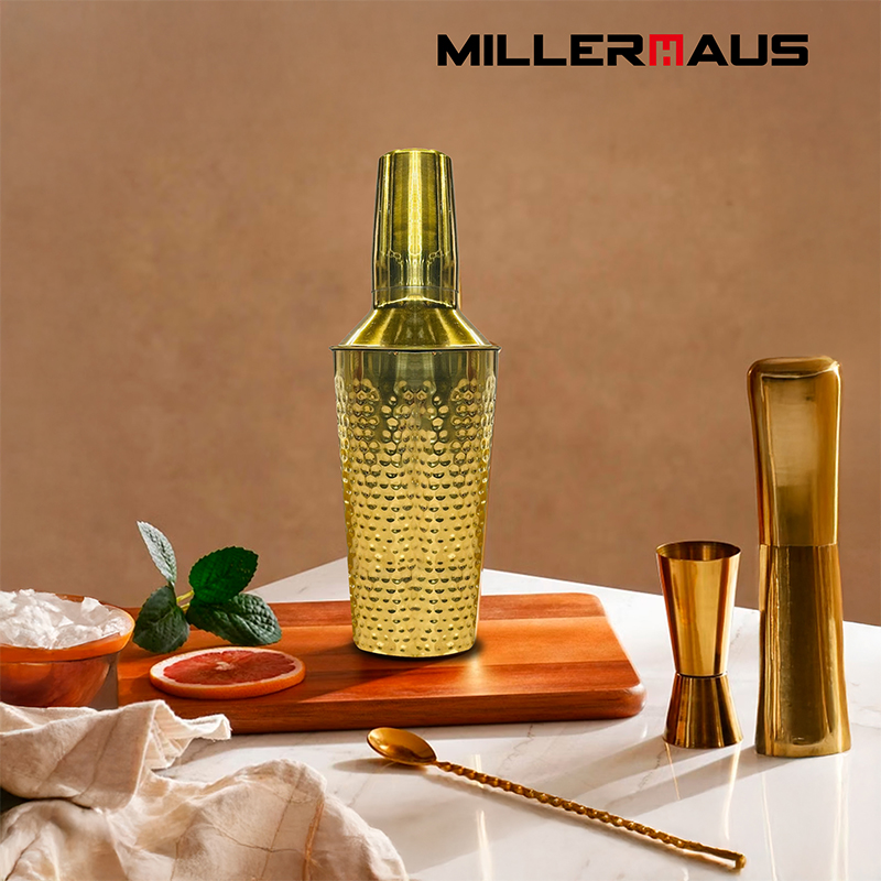 Millerhaus COCKTAIL SHAKER 750ML WITH HAMMERED AND COLOR OUTSIDE Bar Accessories Stainless Steel