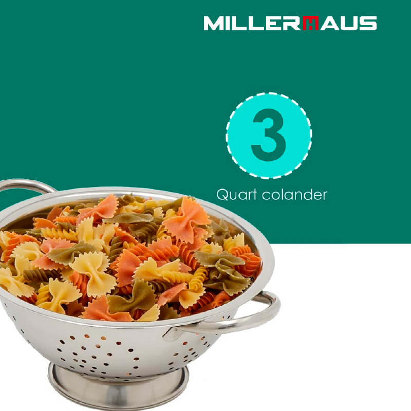 The Millerhaus Deep Colander with a 24.5 cm diameter is a must-have kitchen tool for draining and rinsing your favorite foods. Made from high-quality stainless steel, this colander offers durability and strength for everyday kitchen tasks. Its deep design allows for larger quantities of food, making it ideal for washing vegetables, pasta, or fruits with ease.