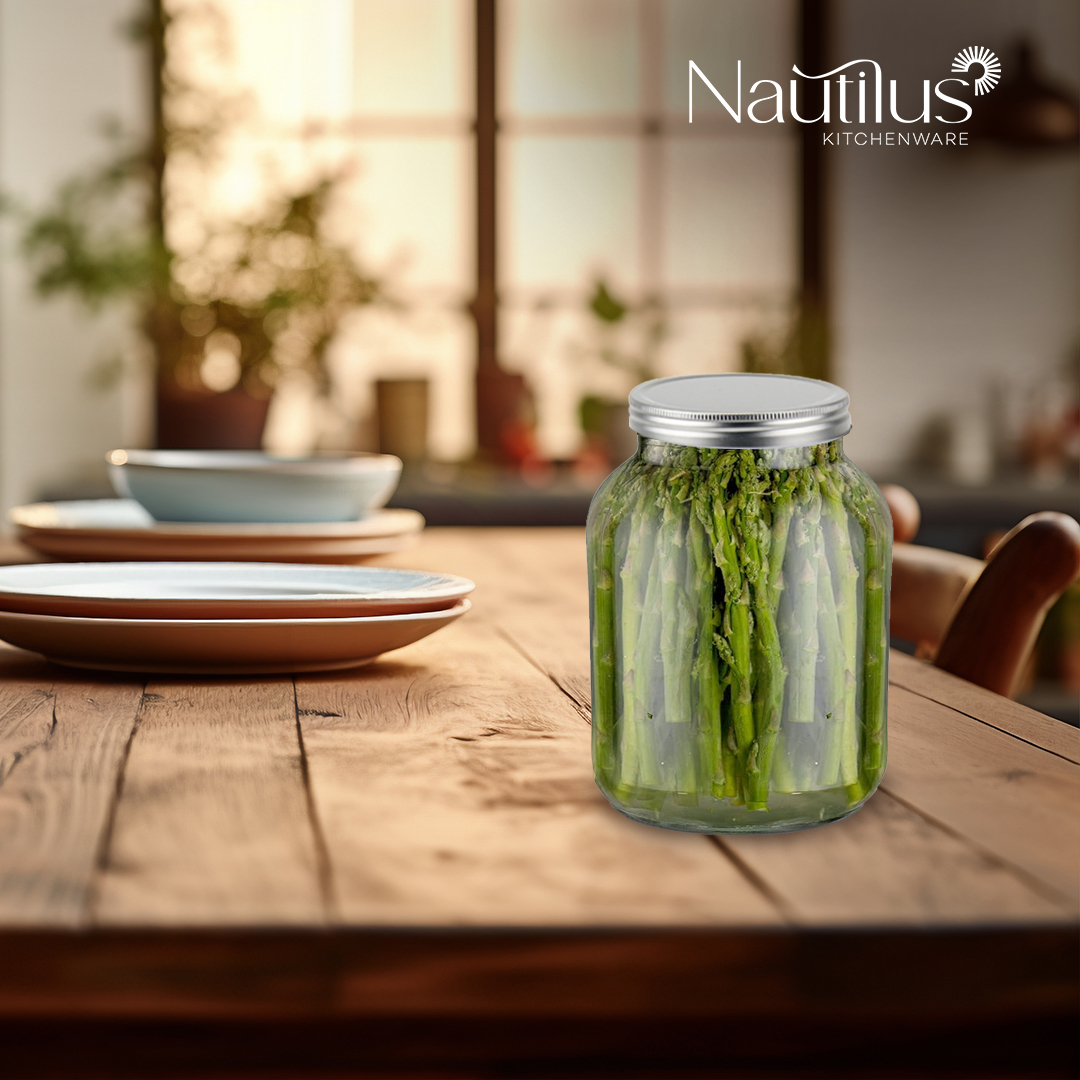 Nautilus Glass Jar 800ml Glass, Non-Toxic and Food-Safe Material, Dishwasher Safe ,With metal lid - Clear