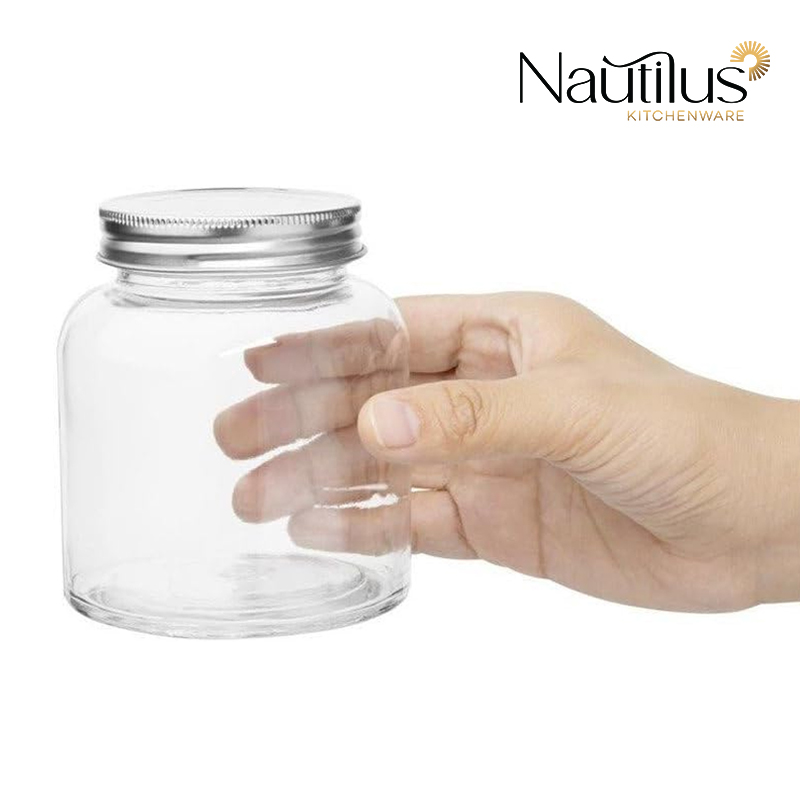 Nautilus Glass Jar 160ml Glass, Non-Toxic and Food-Safe Material, Dishwasher Safe ,With metal lid - Clear