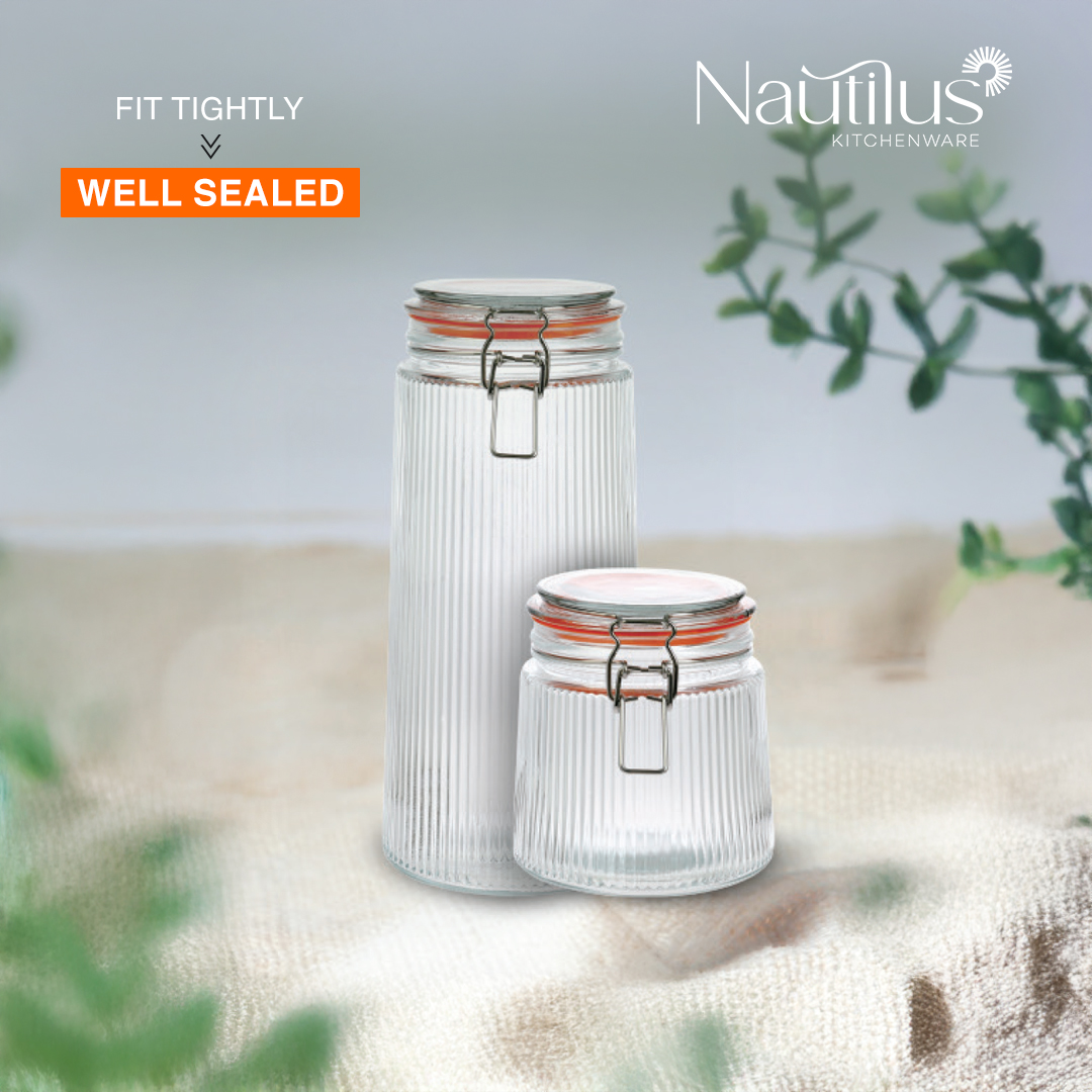 Nautilus Glass Jar 1850ml Glass, Non-Toxic and Food-Safe Material, Dishwasher Safe ,With metal lid - Clear