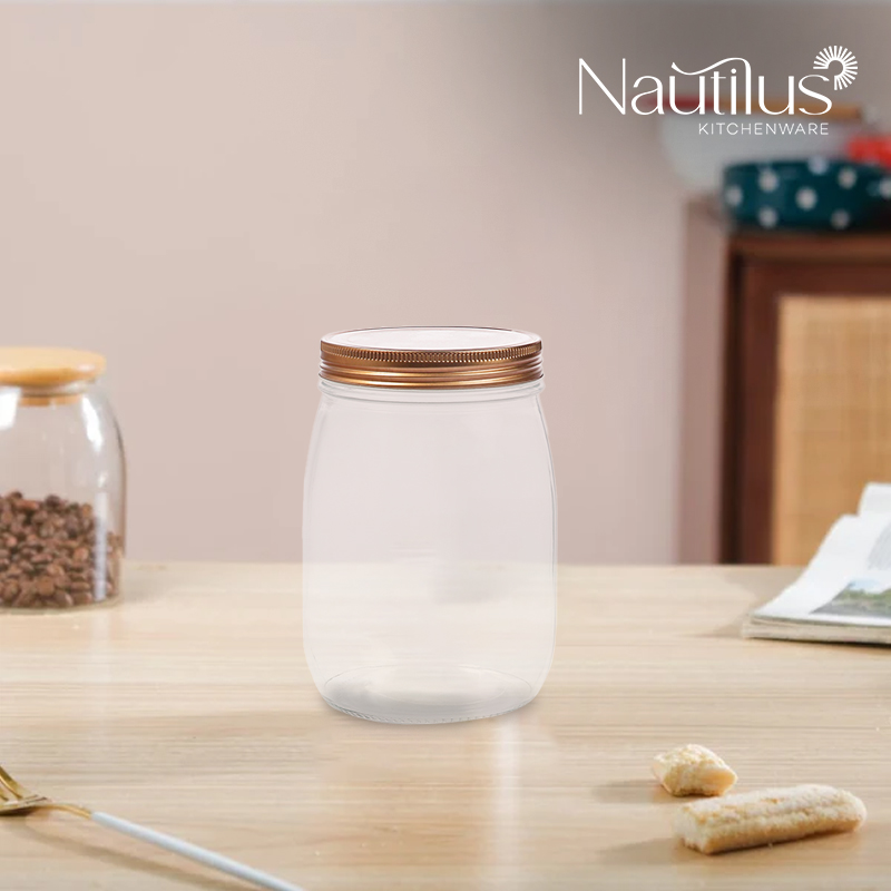 Nautilus Glass Jar 980ml Glass, Non-Toxic and Food-Safe Material, Dishwasher Safe ,With metal lid - Clear