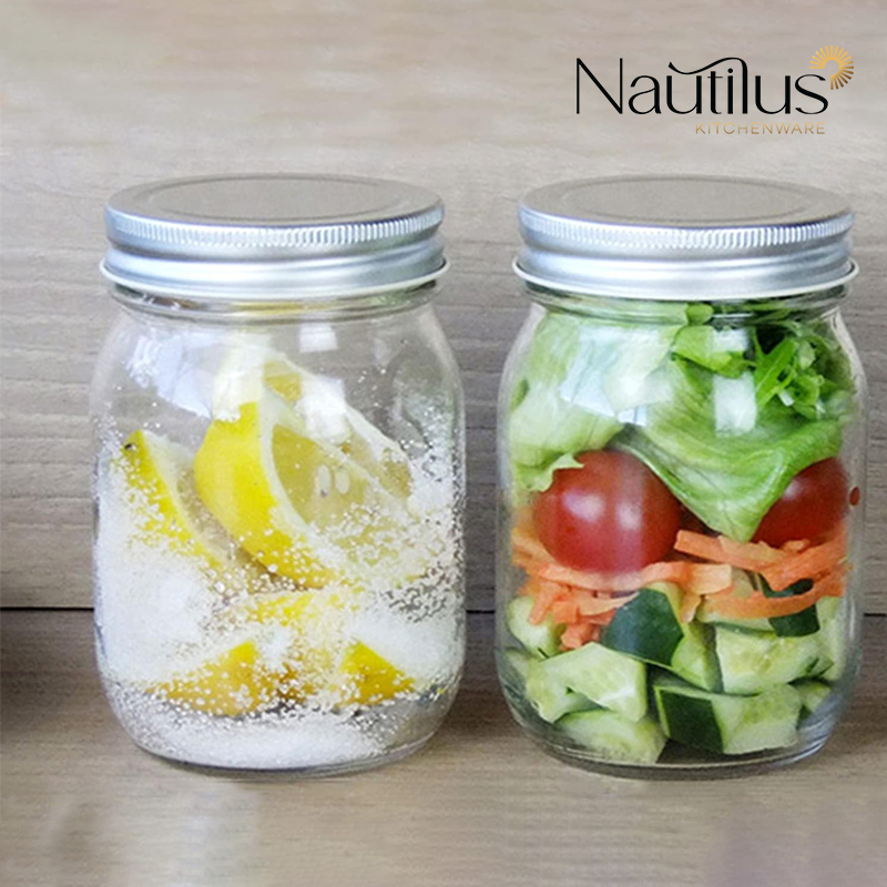 Nautilus Glass Jar 960ml Glass, Non-Toxic and Food-Safe Material, Dishwasher Safe ,With metal lid - Clear