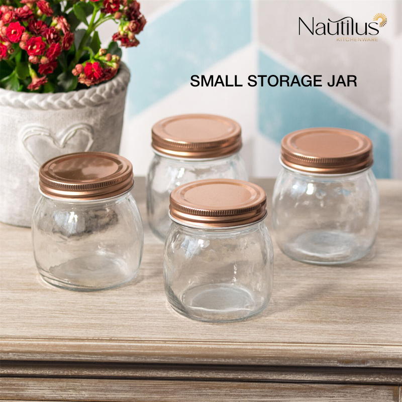 Nautilus Glass Jar 440ml Glass, Non-Toxic and Food-Safe Material, Dishwasher Safe ,With metal lid - Clear
