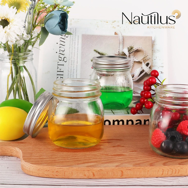 Nautilus Glass Jar 430ml Glass, Non-Toxic and Food-Safe Material, Dishwasher Safe ,With metal lid - Clear