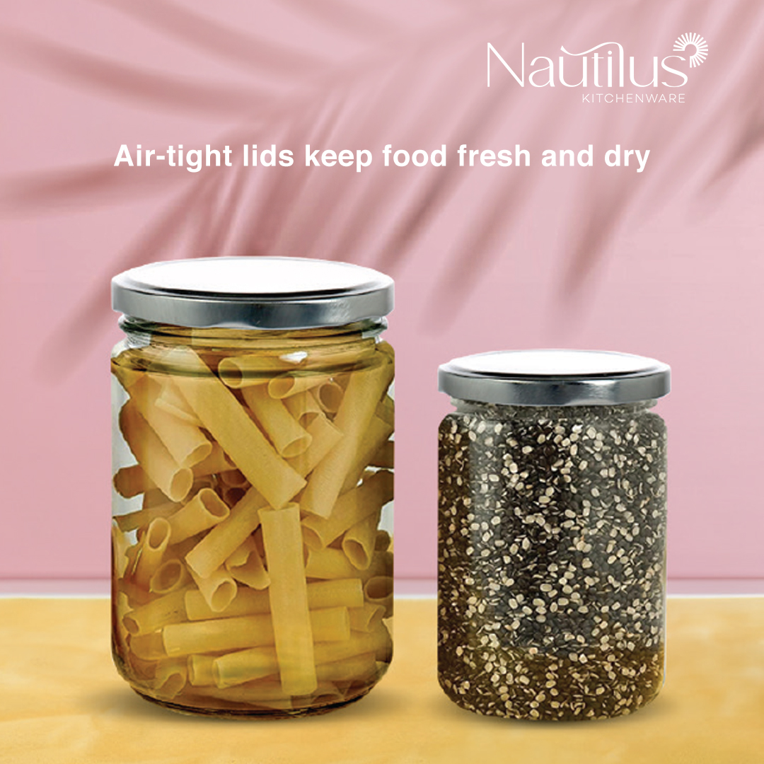 Nautilus Glass Jar 300ml Glass, Non-Toxic and Food-Safe Material, Dishwasher Safe ,With metal lid - Clear