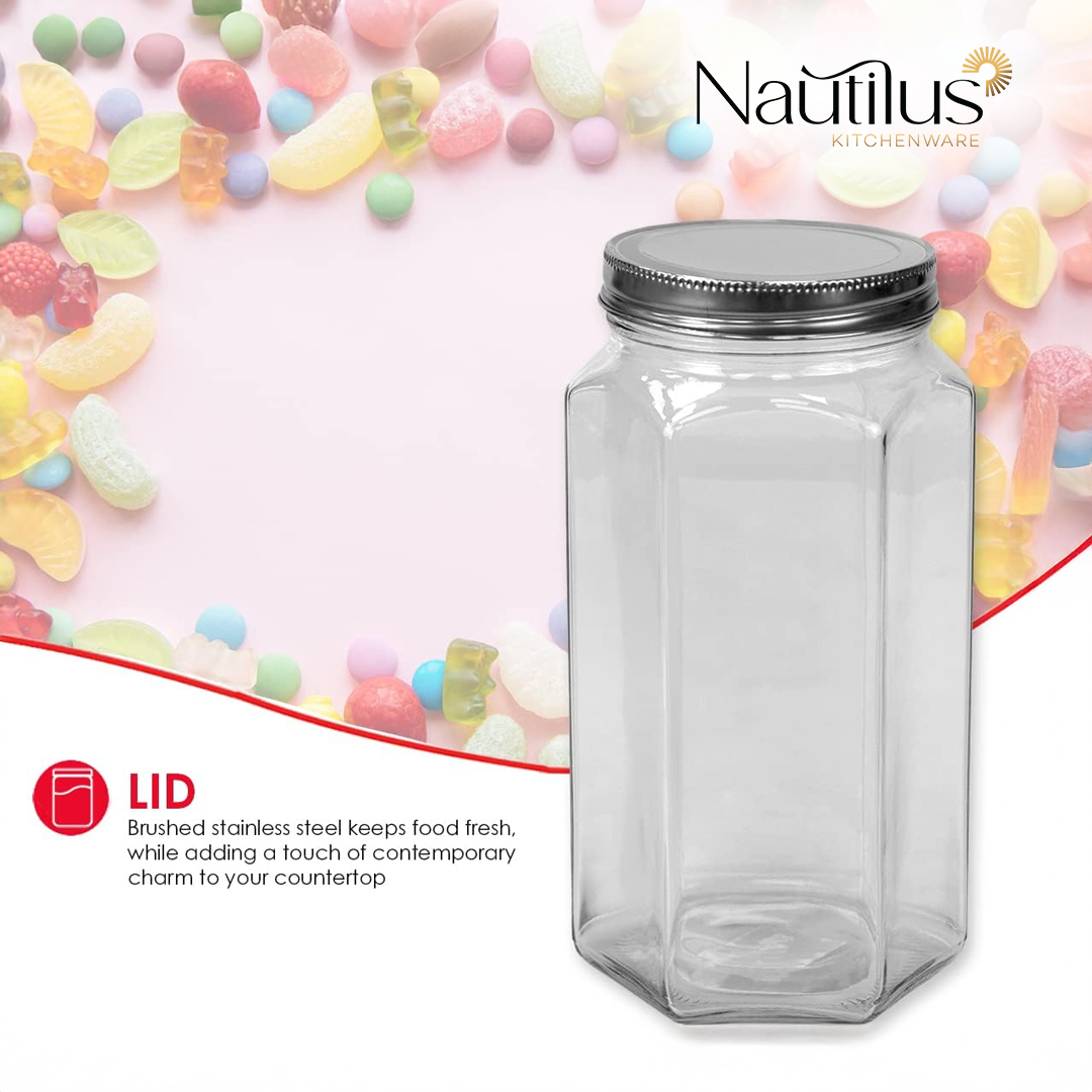 Nautilus Glass Jar 1840ml Glass, Non-Toxic and Food-Safe Material, Dishwasher Safe ,With metal lid - Clear