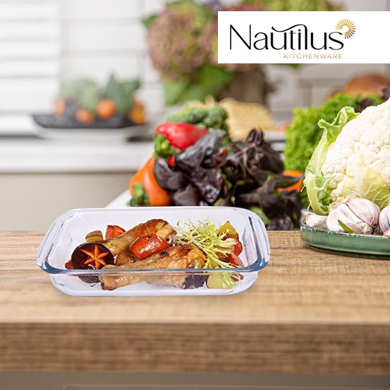 The Nautilus Rectangle Baking Tray is a versatile and durable kitchen essential made from borosilicate glass. It is compatible with ovens, microwaves, and freezers, and its non-porous surface ensures that food odors and stains won’t linger. Featuring ergonomic handles for easy handling and dishwasher-safe convenience, this baking tray combines functionality with ease of use, making it a perfect addition to any kitchen.