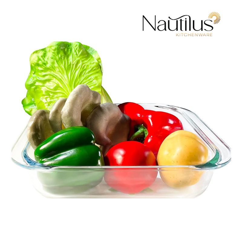 Nautilus 1.8L Square Baking Tray, Microwave, Oven Safe Bakeware Roasting Pan | BPA Free Borosilicate Glass Oven Tray