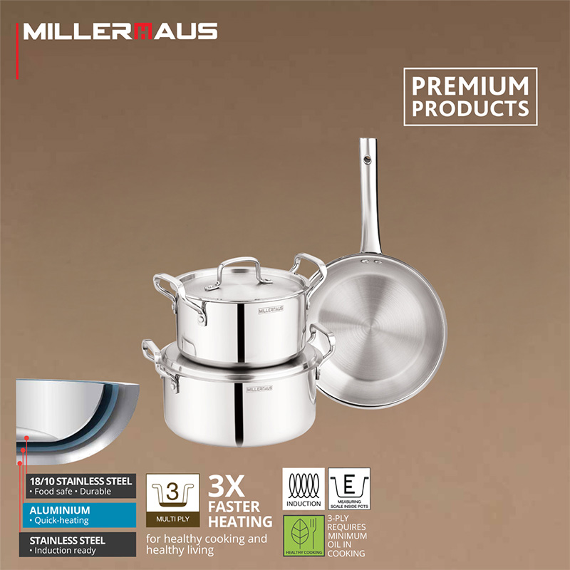 Millerhaus TRIPLY 5PCS COOKWARE SETCookware Set Stainless Steel