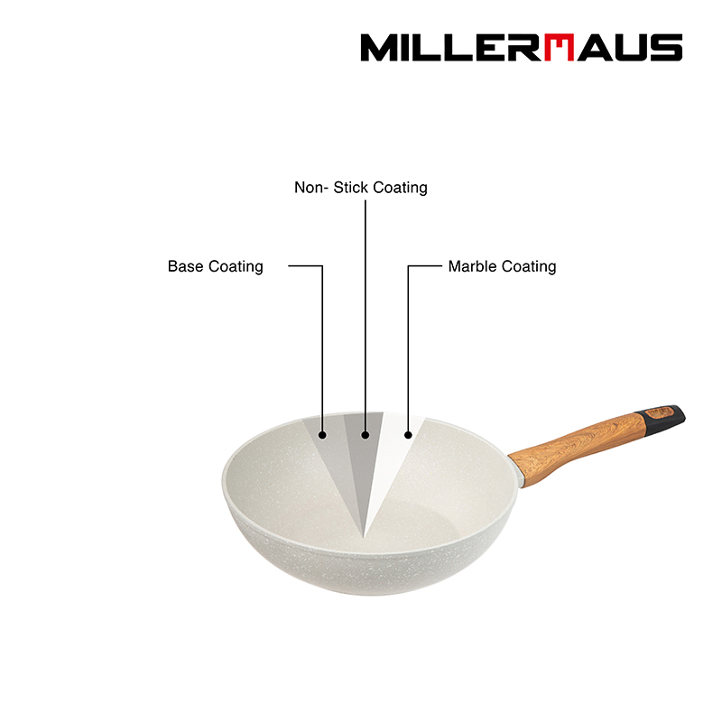 Millerhaus Wok Pan: Forged aluminum has excellent heat conductivity, ensuring even heat distribution across the entire cooking surface. This eliminates hot spots and allows for precise temperature control, improving cooking results and efficiency..Forged aluminum cookware is often paired with advanced non-stick coatings that enhance food release and make cleaning effortless. The non-stick surface also allows for healthier cooking with less oil or fat.